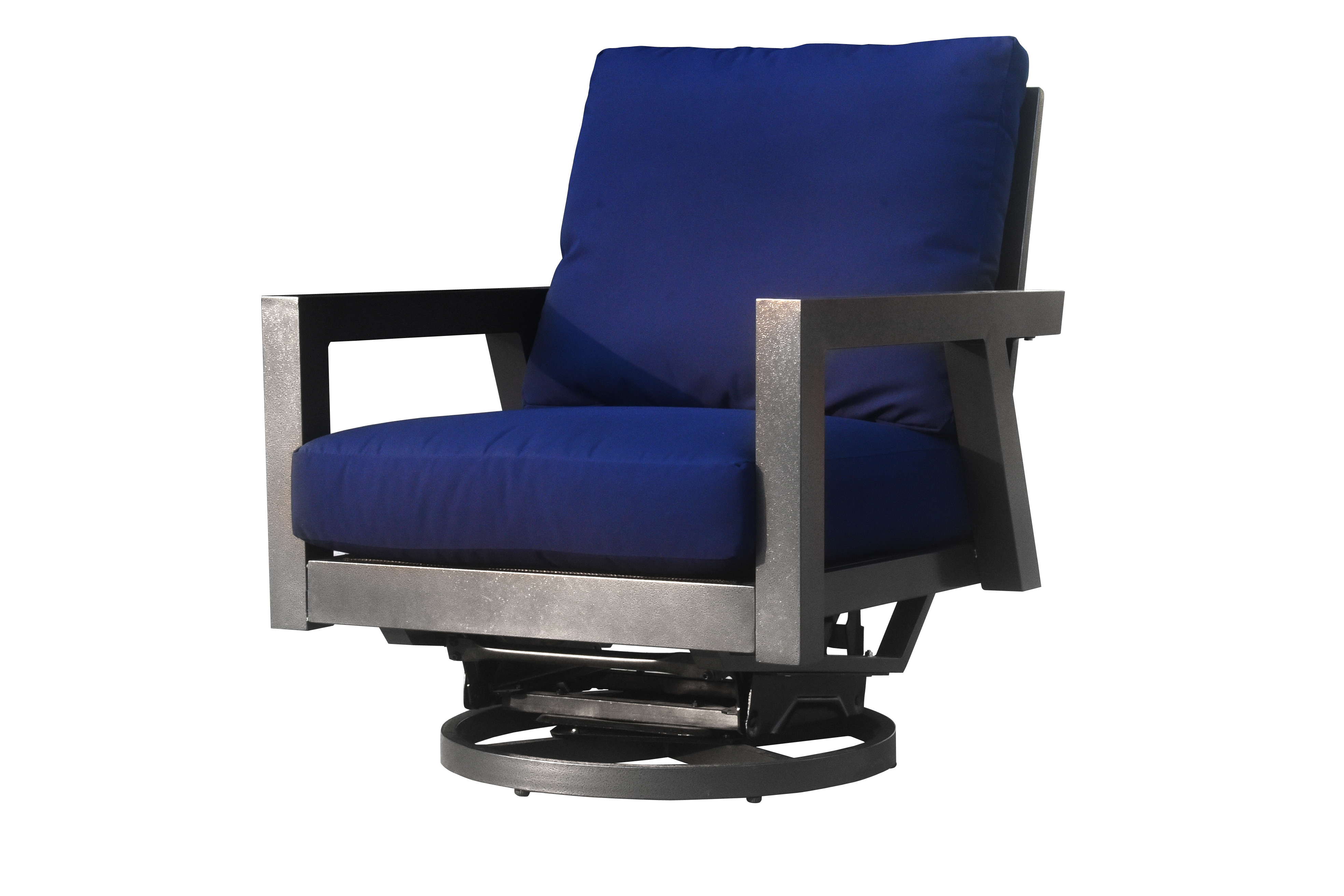 Sol Casual has transformed the backyard from the typically Wooden patio set and updated it into Aluminum to give it that finish that can last a lifetime. With a Pewter finish and stunning Navy Cushions, the Rio Swivel Lounge Chair is the perfect place to relax in the backyard.